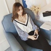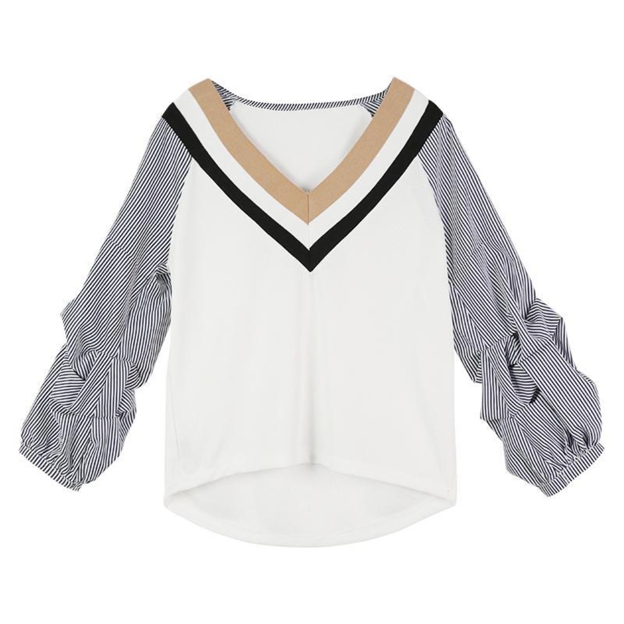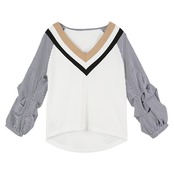 TシャツVネック切替ストライプ柄切替アバンギャルド 【DL-1】