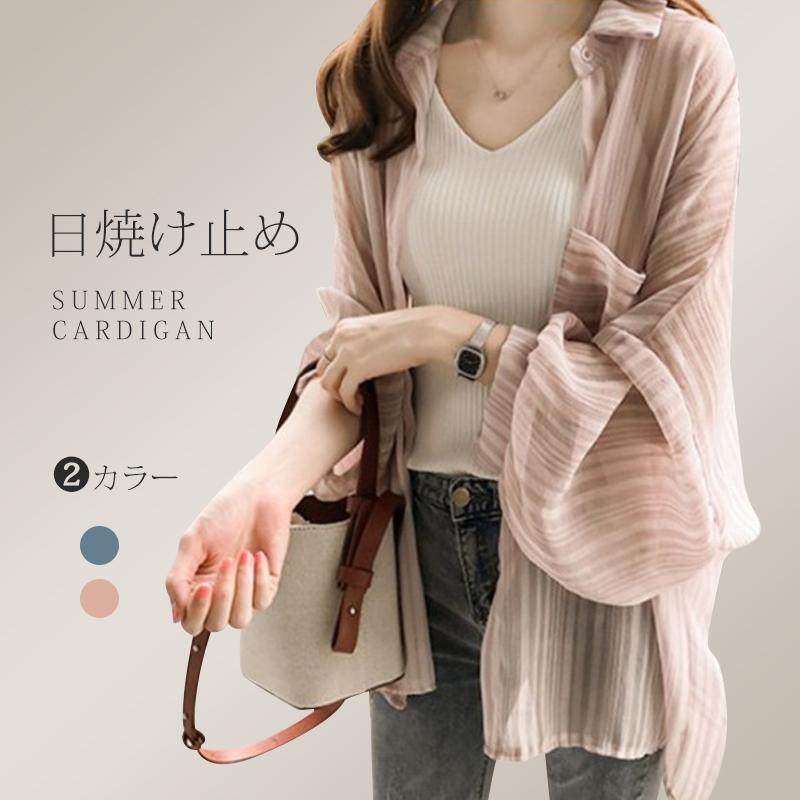 絶対流行夏カーディガンストライプ柄日焼け止めレディースファッションアウター 【DL-19】