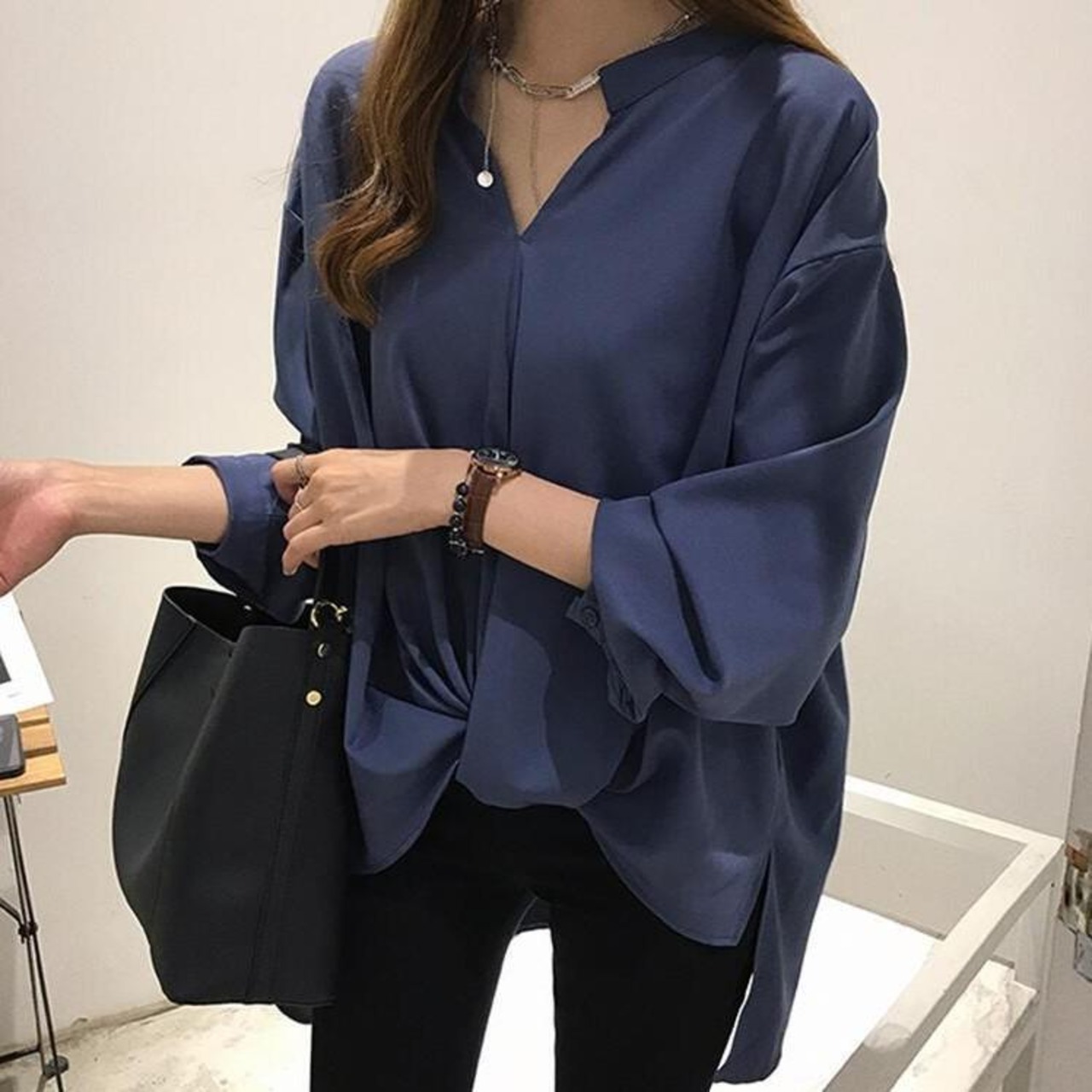新作シャツvネック無地おしゃれOL通勤ベーシック 【DL-43】