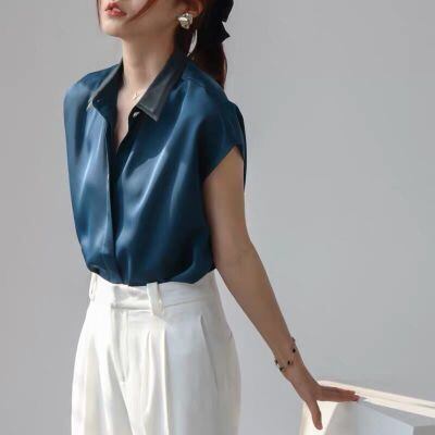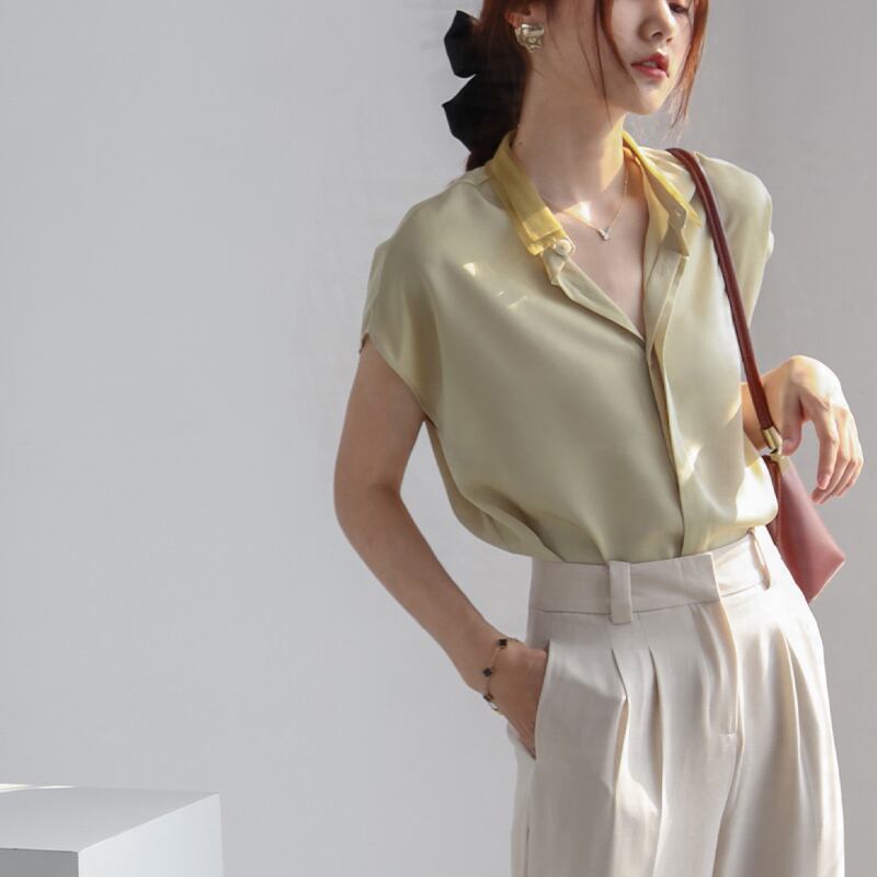 無地半袖エレガントシャツ気質アップブラウス 【DL-96】