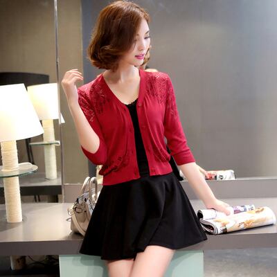 ニット透かし彫りカーディガンボタン付き着回し短い 【DL-119】
