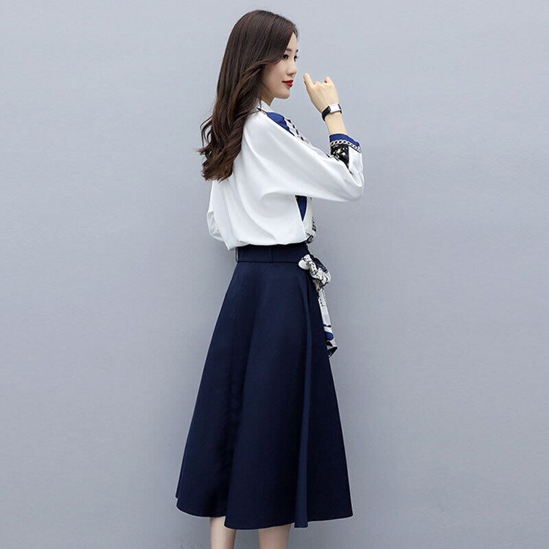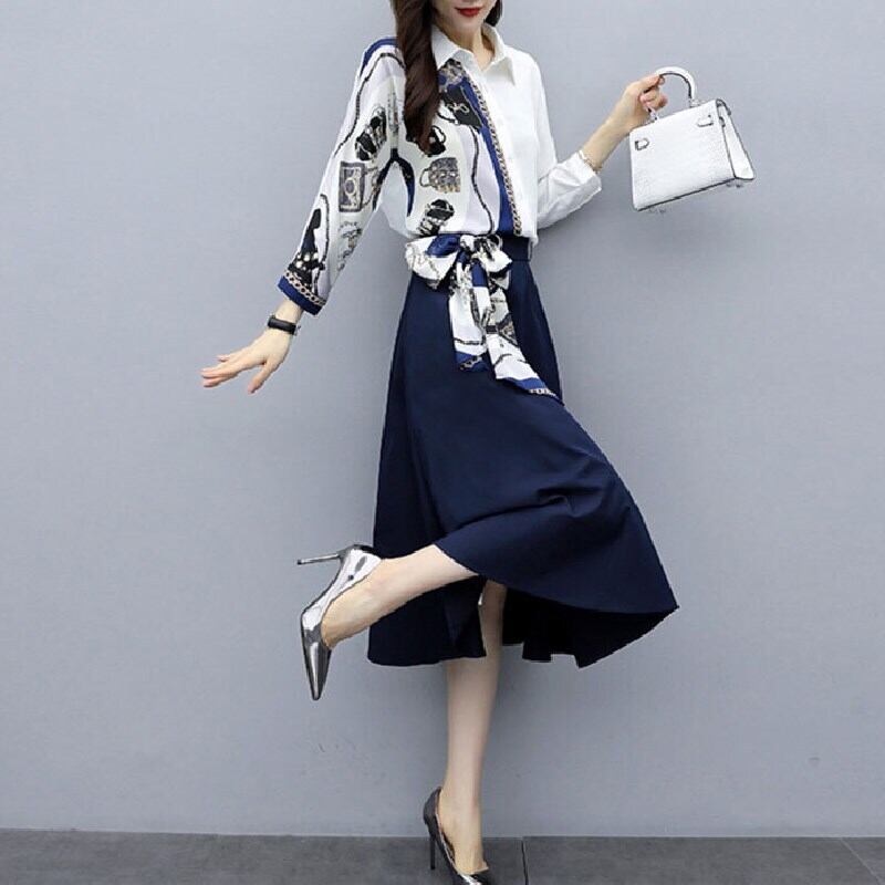花柄切り替えシャツハイウエスト膝丈スカートセットアップ 【DL-123】