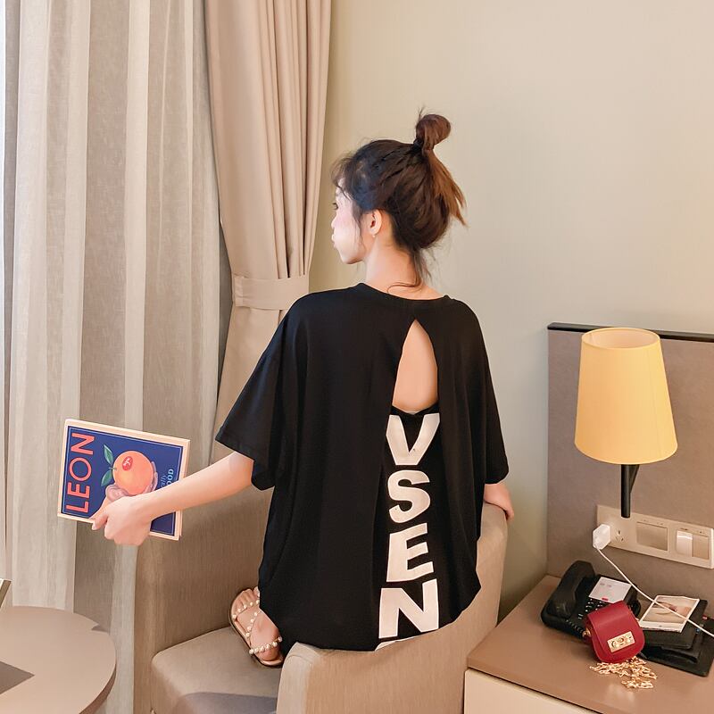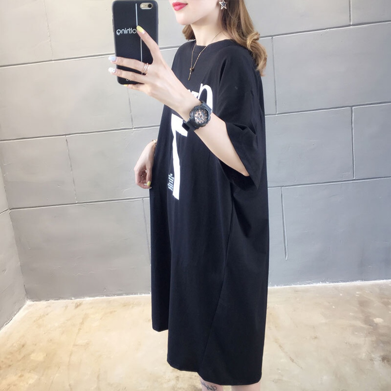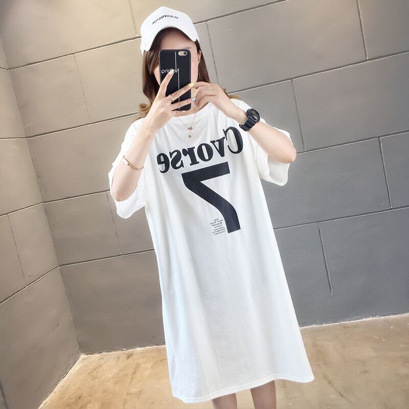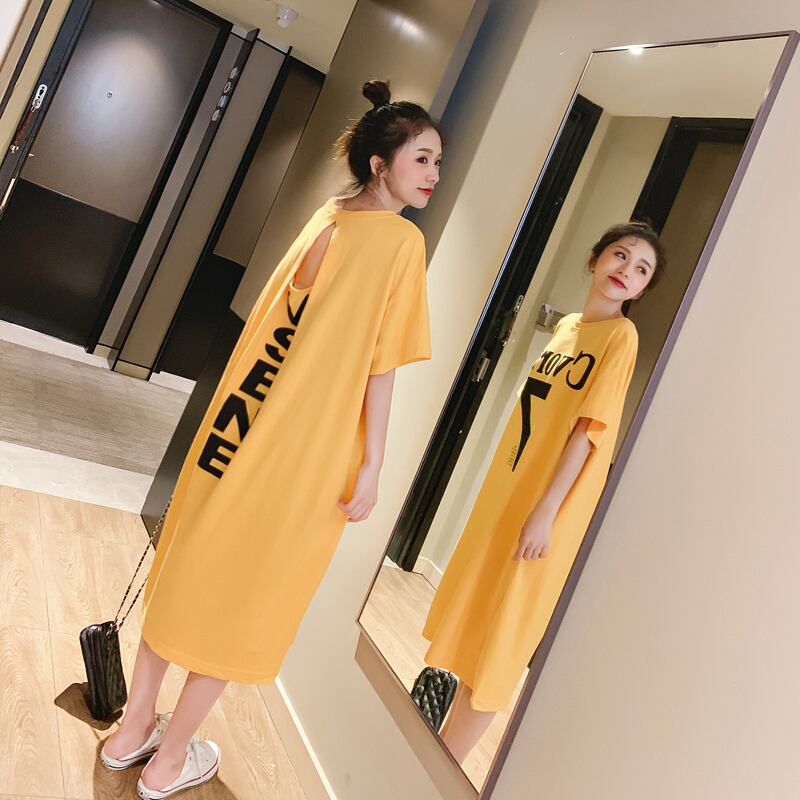 シンプルスポーツラウンドネック透かし彫り不規則アルファベット配色カジュアルワンピース 【DL-142】