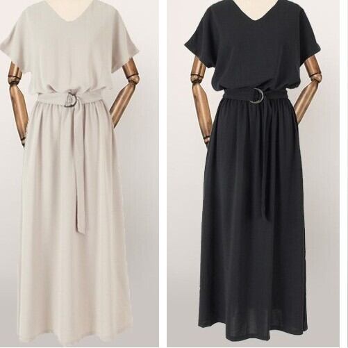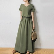 絶対流行 シンプルハイウエストAライン無地カジュアルワンピース 【DL-161】
