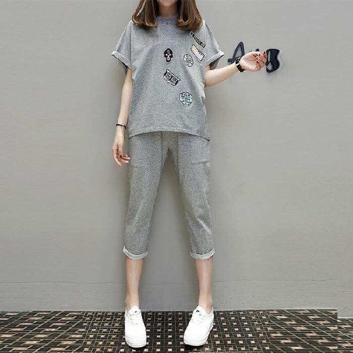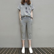 大きいサイズ着痩せ無地ラウンドネックカジュアル夏セットアップ 【DL-177】