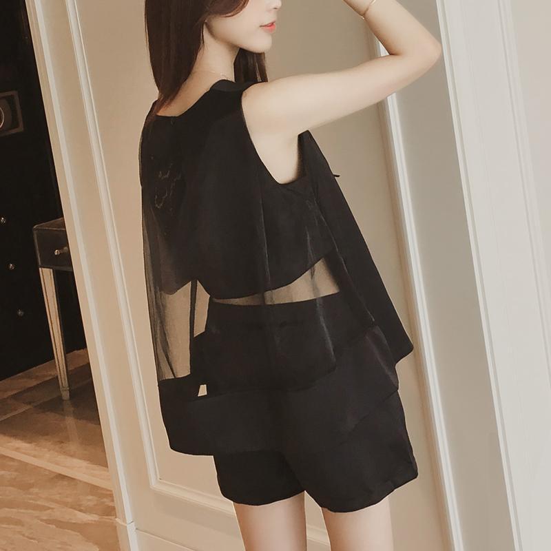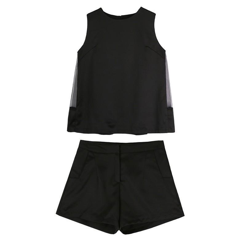チュール切り替えトップス無地ショートパンツセットアップ 【DL-178】