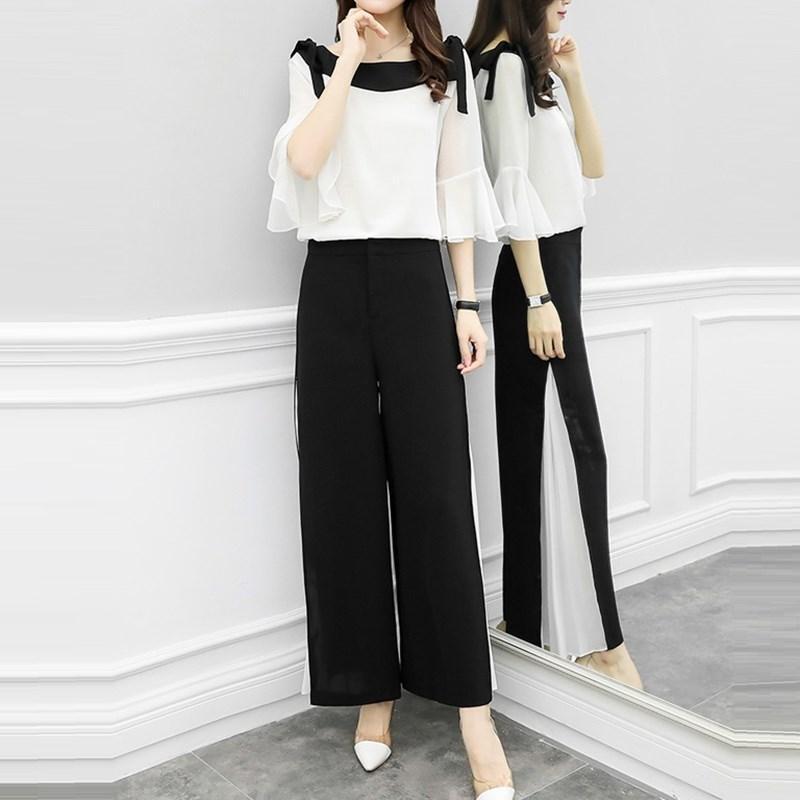 シンプルエレガント切り替えスピーカースリーブ配色セットアップ 【DL-191】