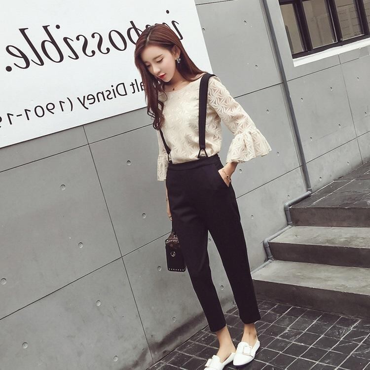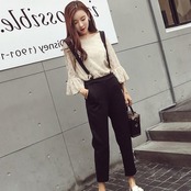 レースフリル袖トップス黒オールインワン大人可愛いセットアップ 【DL-198】