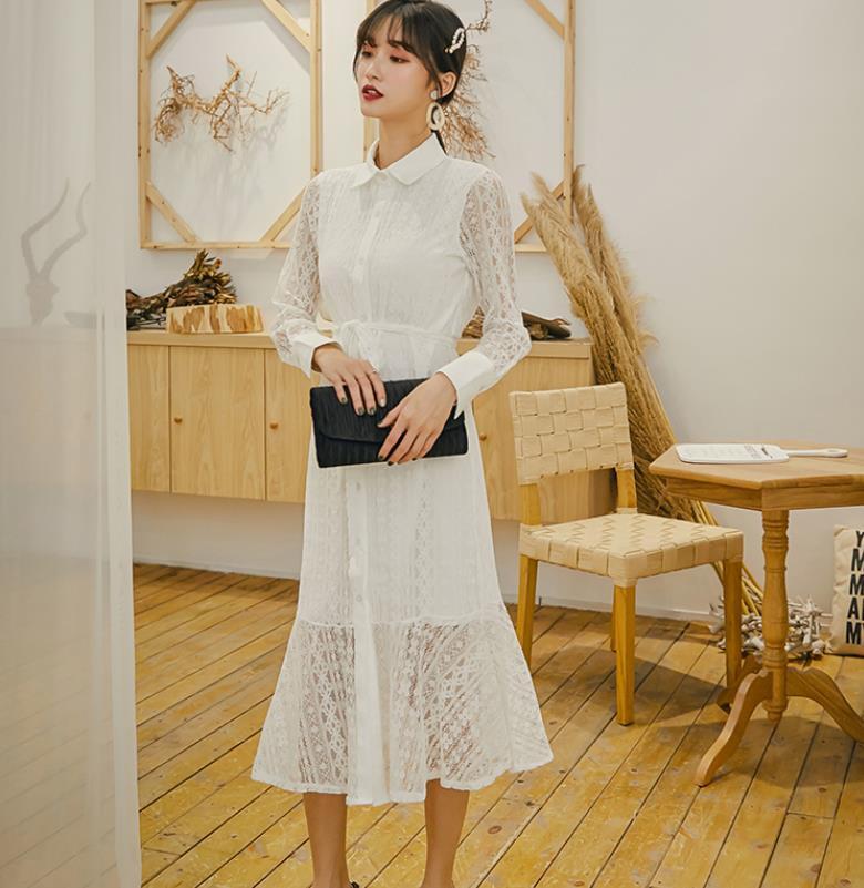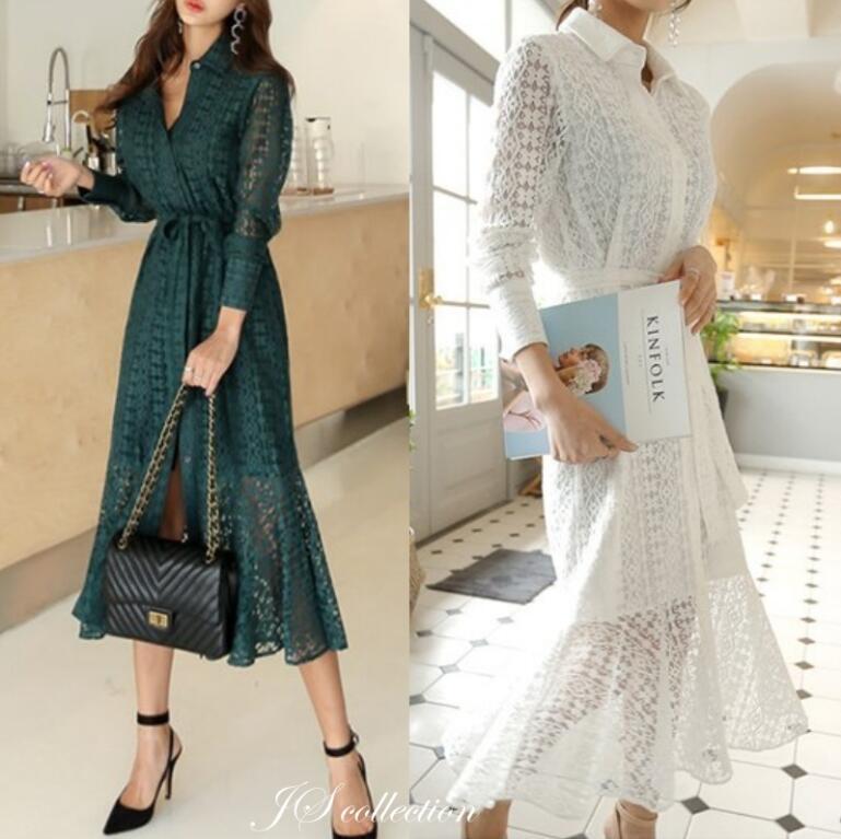大人気 透かし彫りボディコンレースセクシー長袖エレガントワンピース 【DL-246】