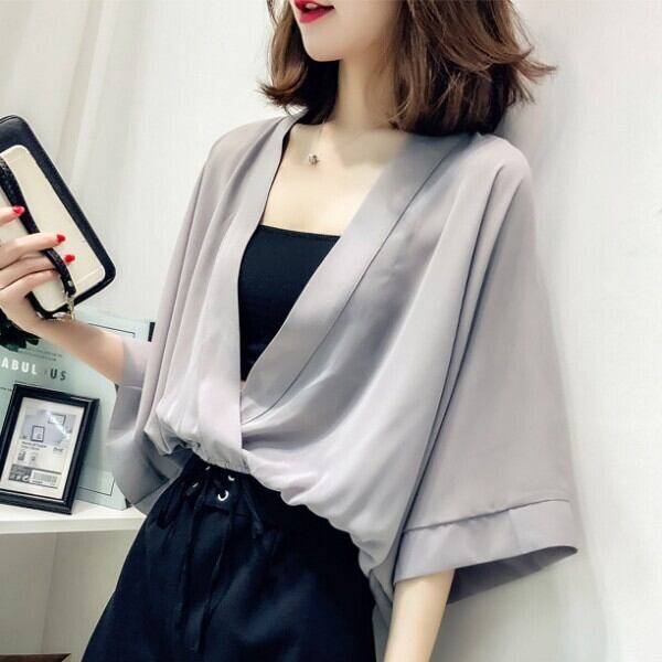 無地半袖Vネック着回しシンプルブラウス 【DL-288】