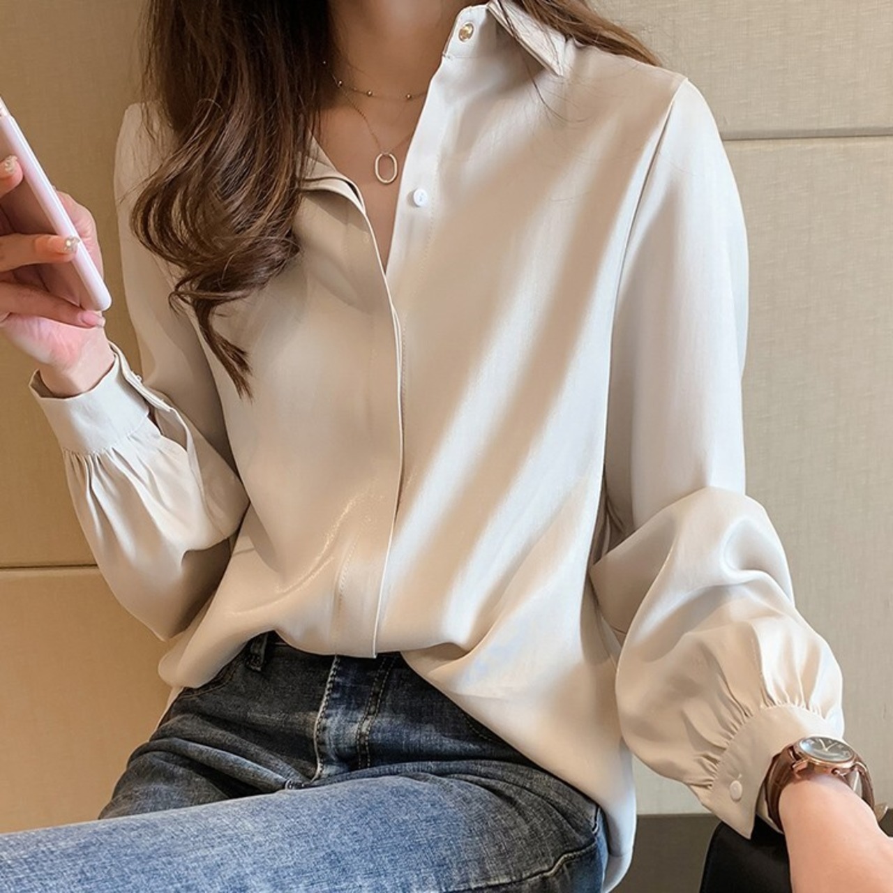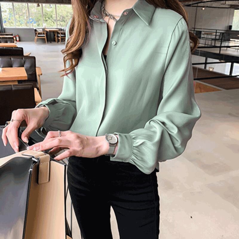 人気高い 長袖折襟シングルブレスト無地ブラウス 【DL-296】