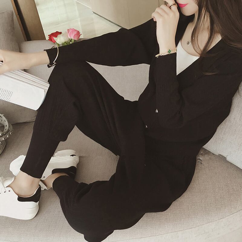 大人気夏秋ニット長袖Vネックカーディガンハイウエスト無地セットアップ レディースファッション 【DL-316】