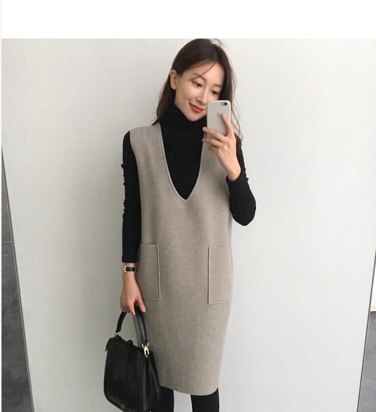ノースリーブ無地Vネックベスト&トップスセットアップ 【DL-320】
