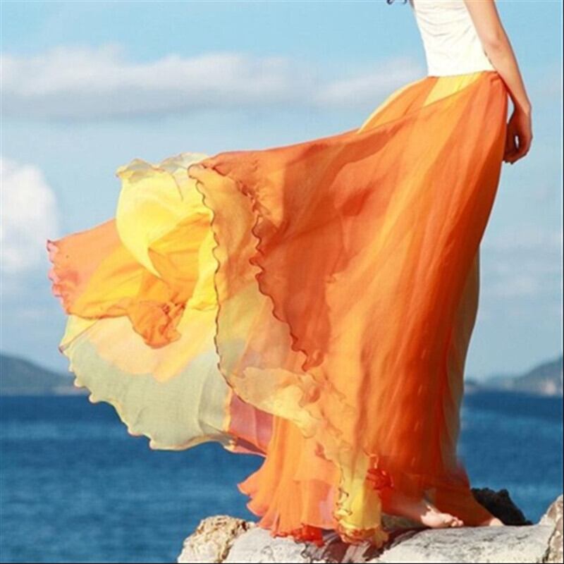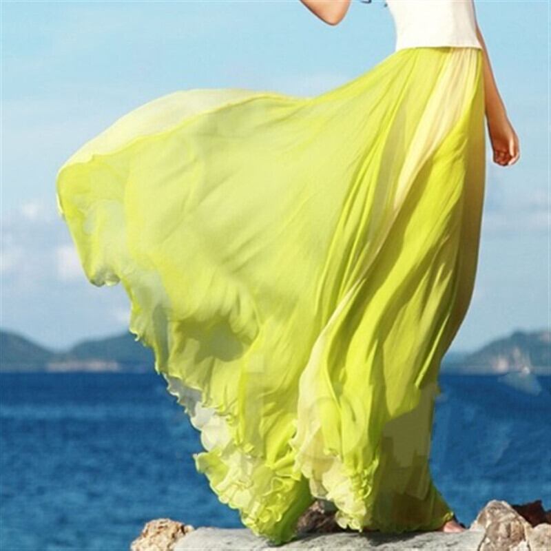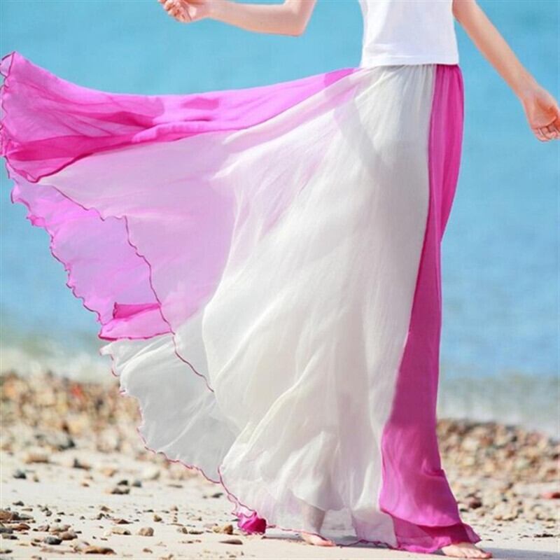 夏秋ロング丈ボトムス配色切り替え大振りゴム旅行スカート 【DL-335】