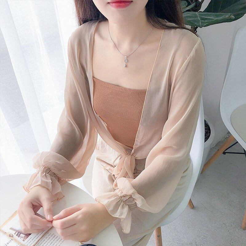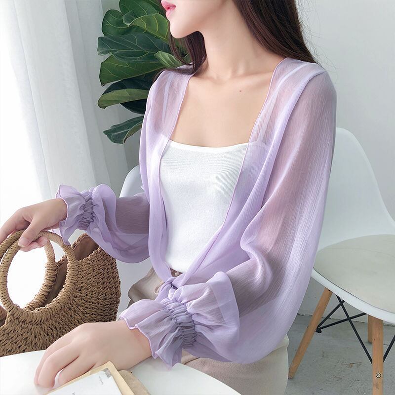 超人気商品 スウィートUVカット長袖日焼け防止シフォン無地カーディガン 【DL-346】