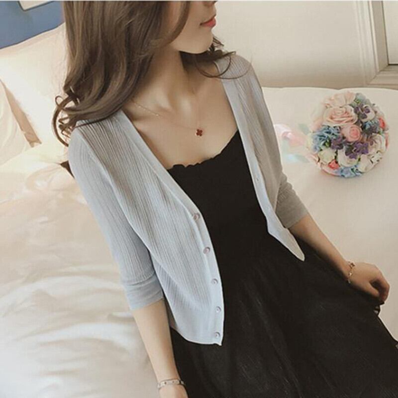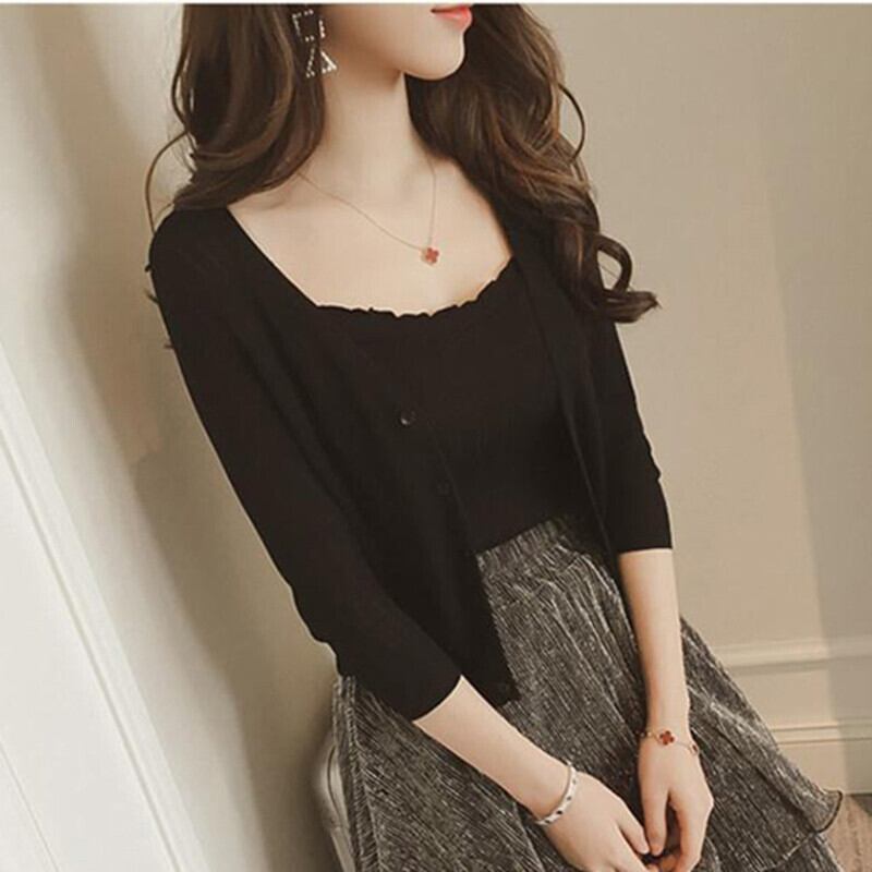 無地長袖ニットショート丈カーティガン 【DL-349】