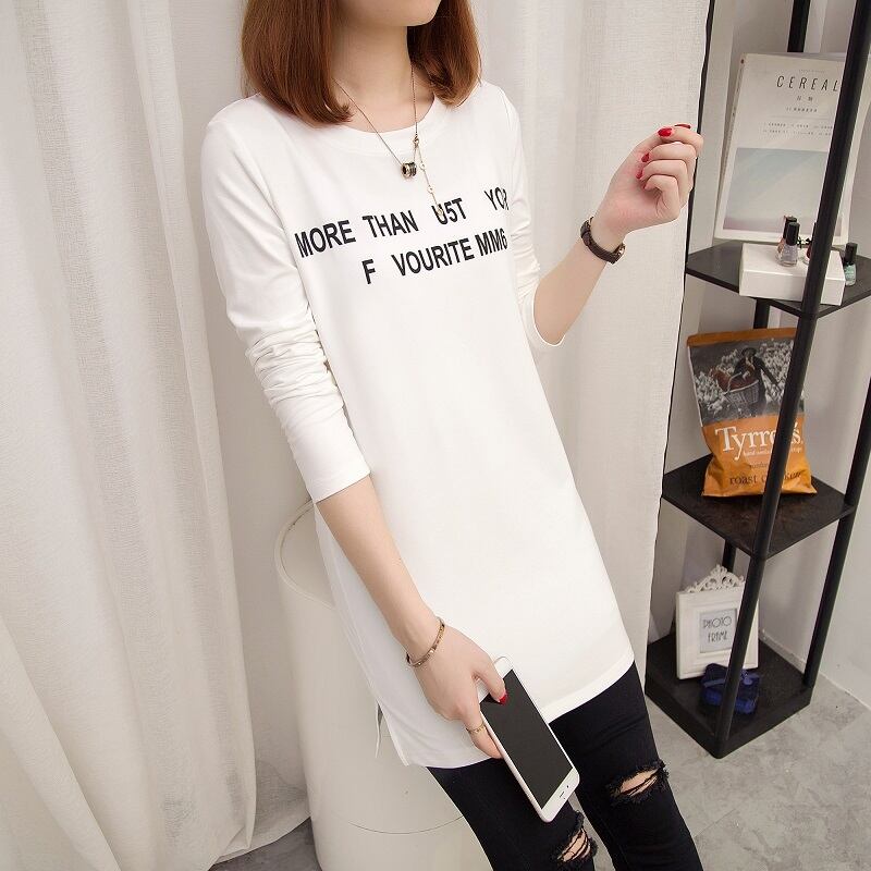 長袖ロングラウンドネックアルファベットTシャツ 【DL-490】