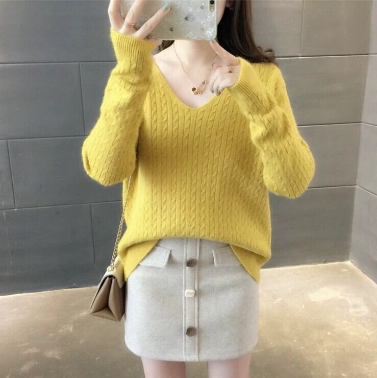 秋冬長袖シンプルVネック無地セーター 【DL-508】