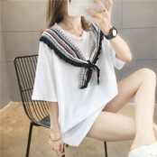 ins超人気 韓国系無地ボウタイ飾りゆったり半袖カジュアルtシャツ 【DL-551】