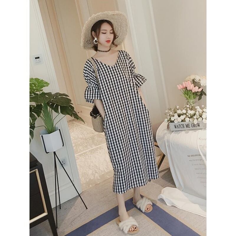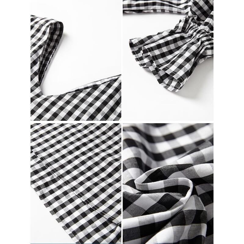 チェック柄背開くセクシー半袖ワンピースデート 【DL-595】