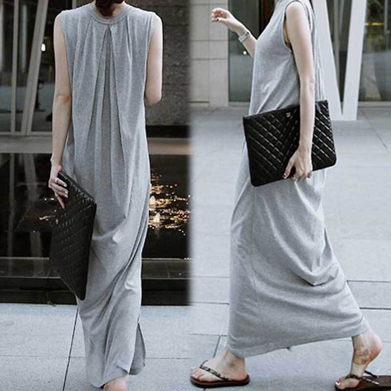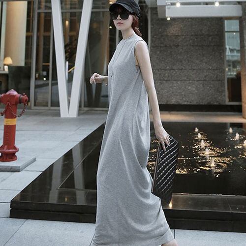 話題沸騰中 シンプル ロング ラウンドネック プルオーバー 無地 カジュアルワンピース 【DL-662】