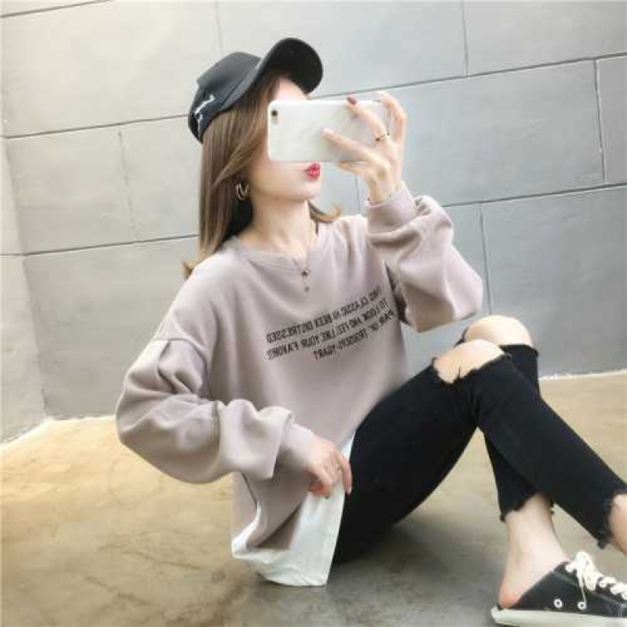 アルファベットプリント無地長袖パーカートップス 【DL-660】