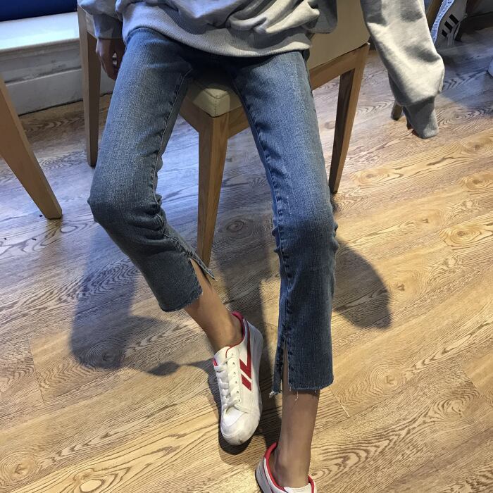 着やせデニム無地九分丈ジーンパンストレッチスリットカジュアルパンツ 【DL-699】