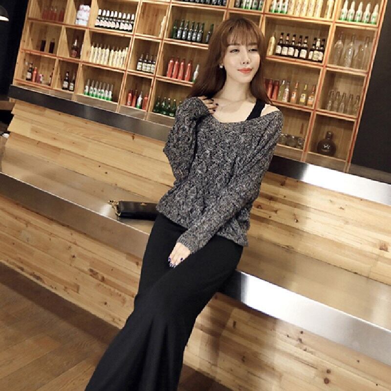 透かし彫りニット長袖リゾート&ブラック無袖ワンピースセットアップ 【DL-769】