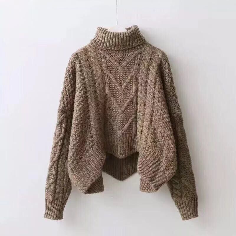 ハイネックニット不規則セーターニットウェアトップス 【DL-829】