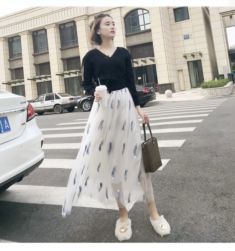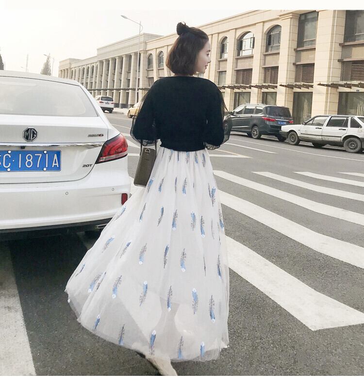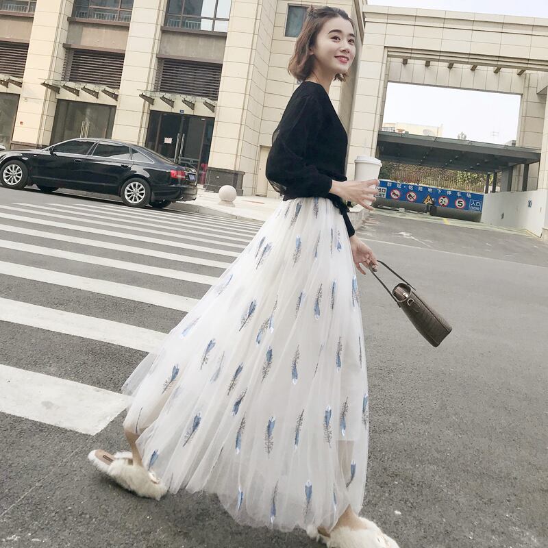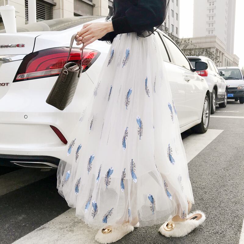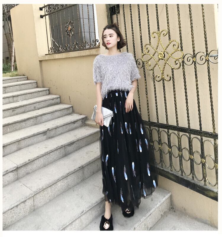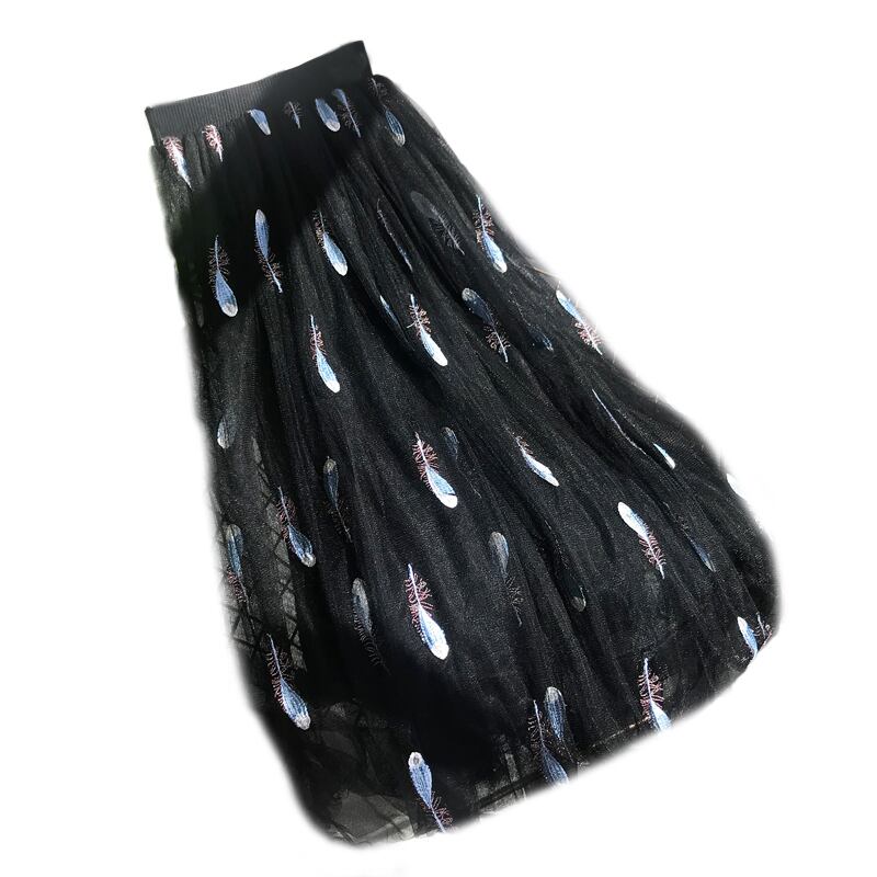 メッシュスカートハイウエストAラインロング丈大振りおしゃれ 【DL-711】