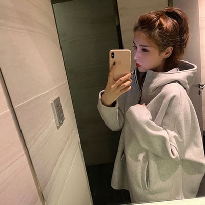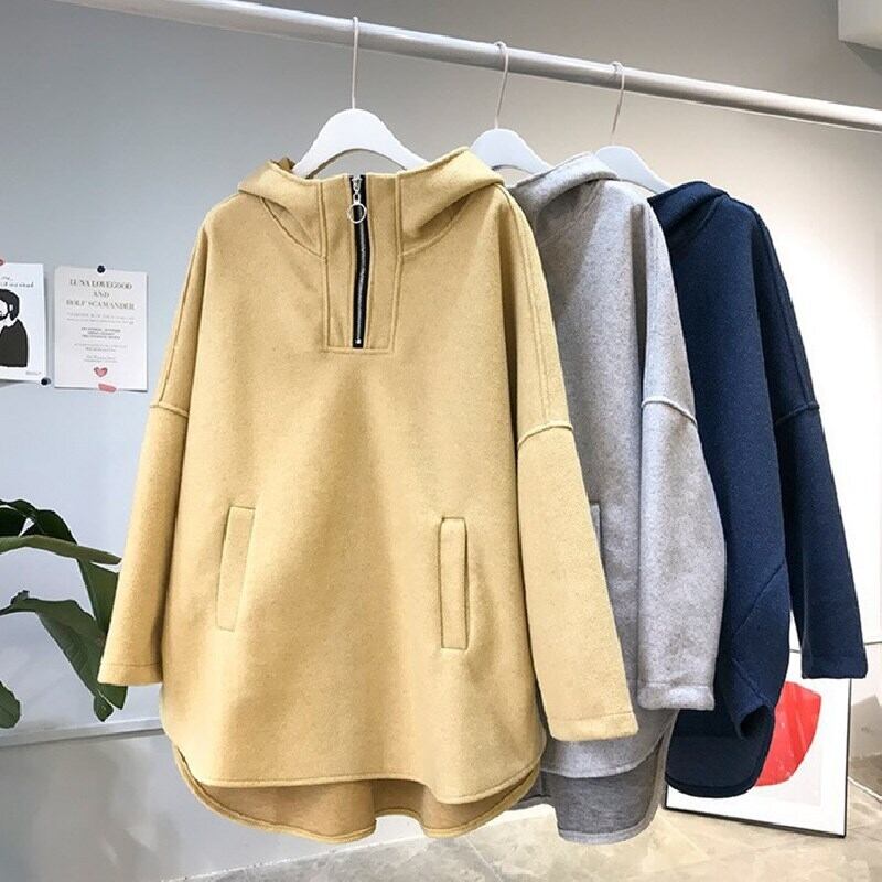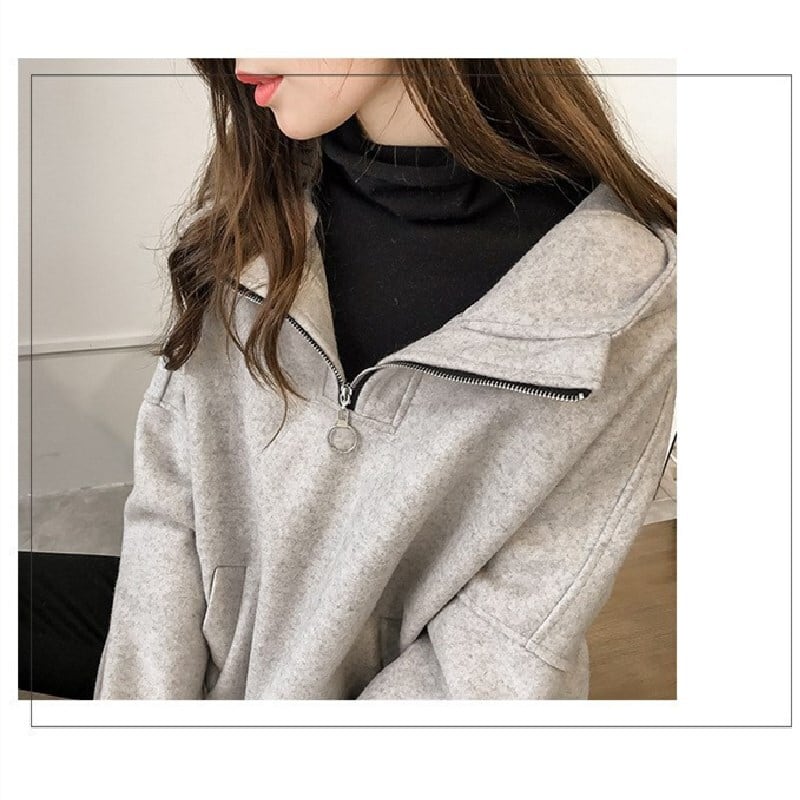 チャック付きハイネックフード付きパーカートップス 【DL-834】