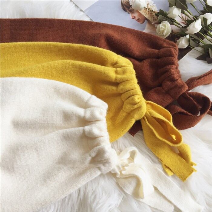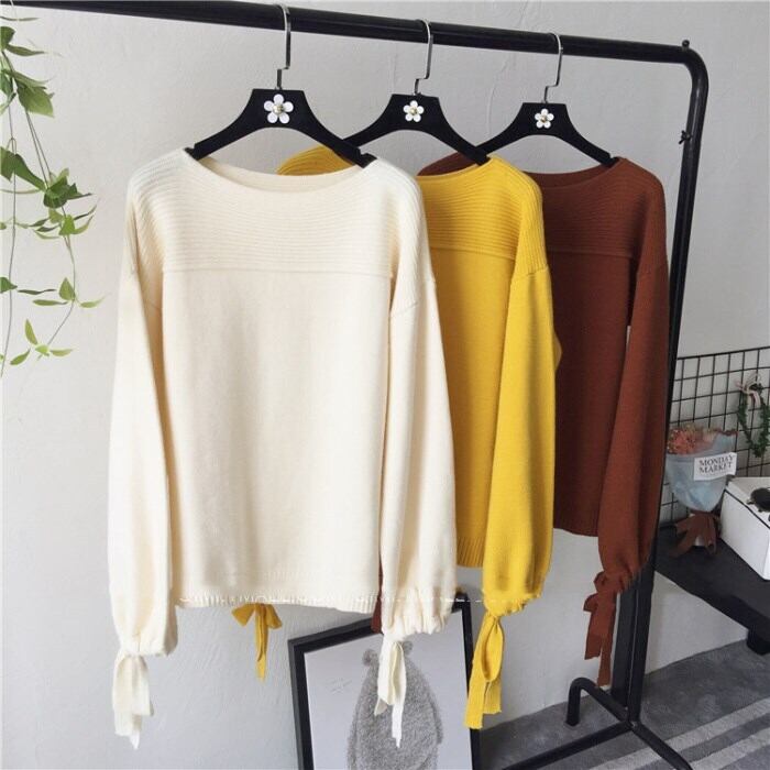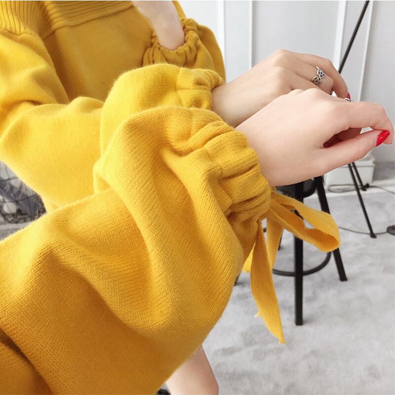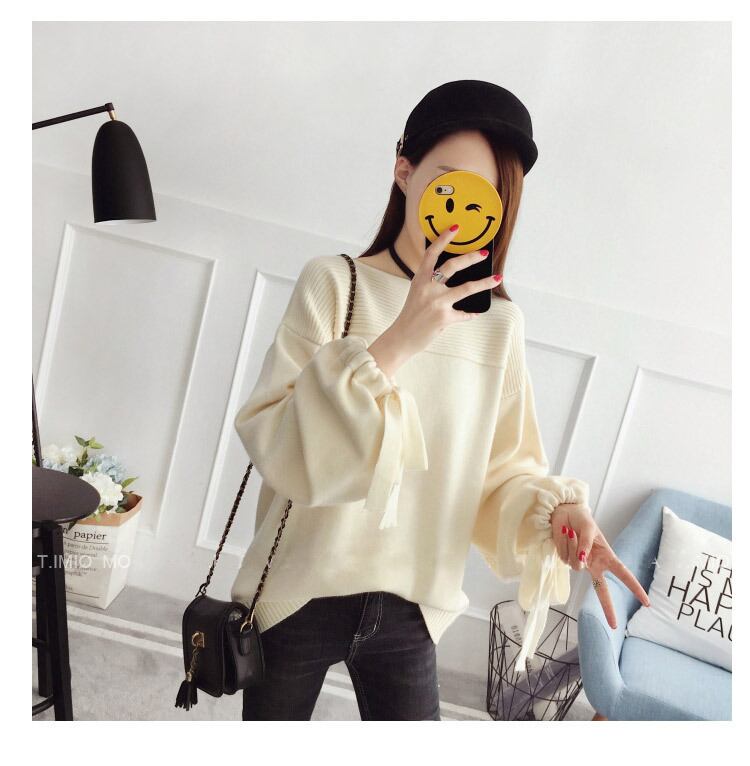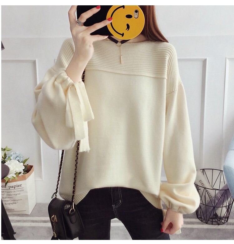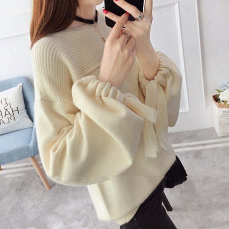 パフースリープニットウェアセーターボウタイトップス 【DL-908】