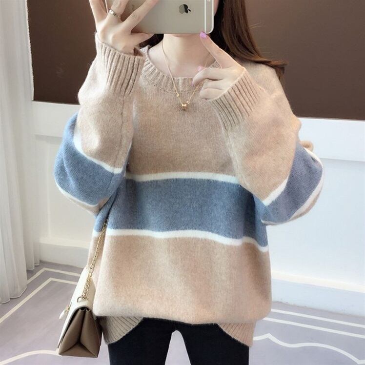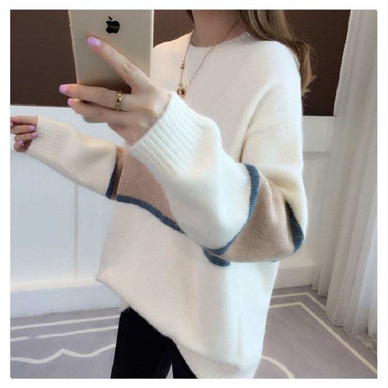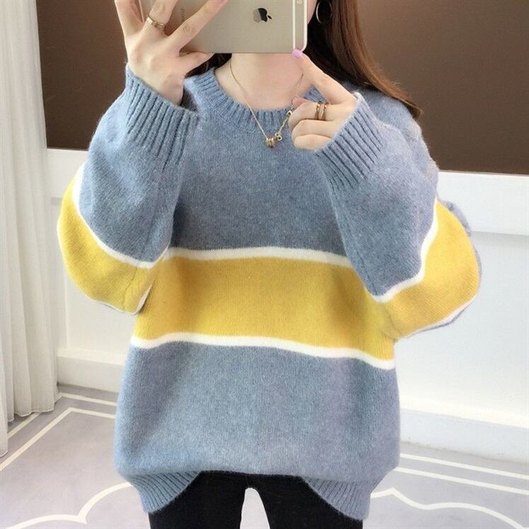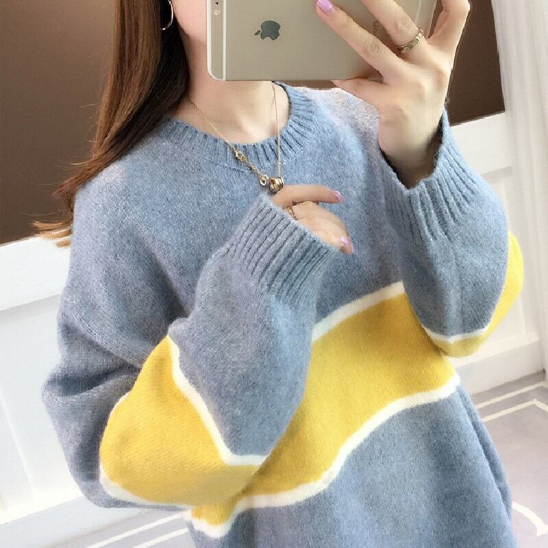 トップス配色切替秋冬ニットセーター 【DL-919】
