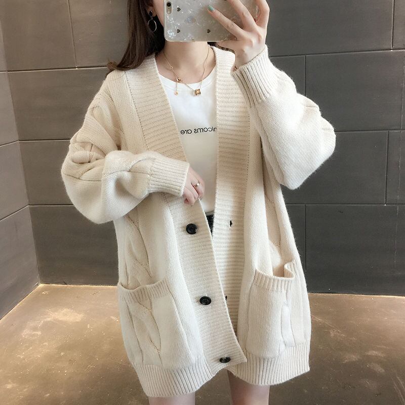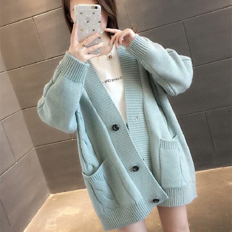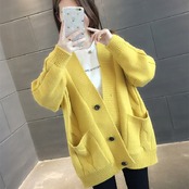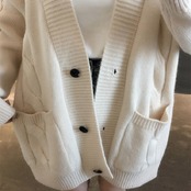 無地ボタン付きカーディガンニットアウター・コートシンプル 【DL-791】