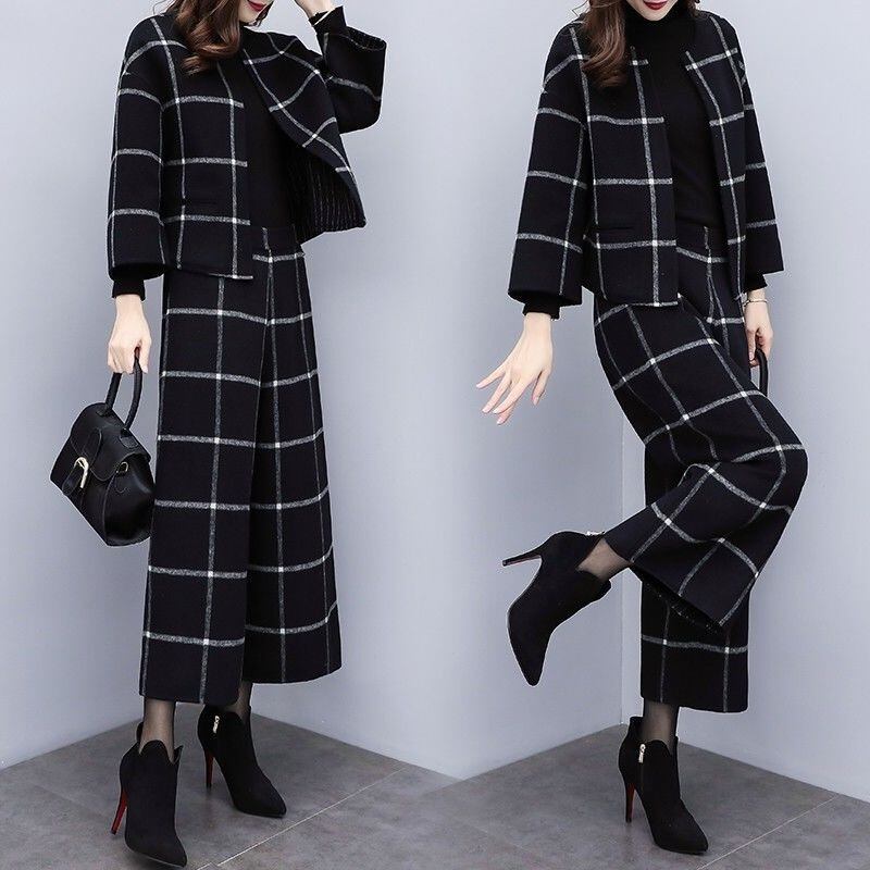 チェック柄コート&ガウチョ着回し通勤ビジネススタイルセットアップ 【DL-856】
