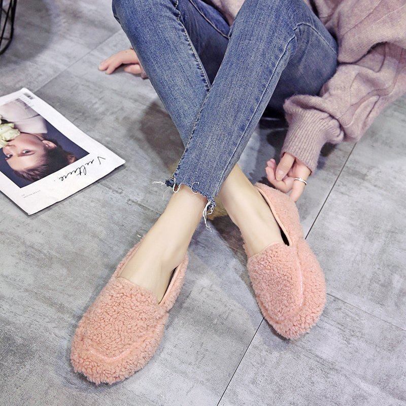 偽ラムウールパンプルカジュアル無地履きやすい心地よいシューズ 【DL-976】
