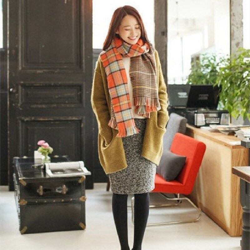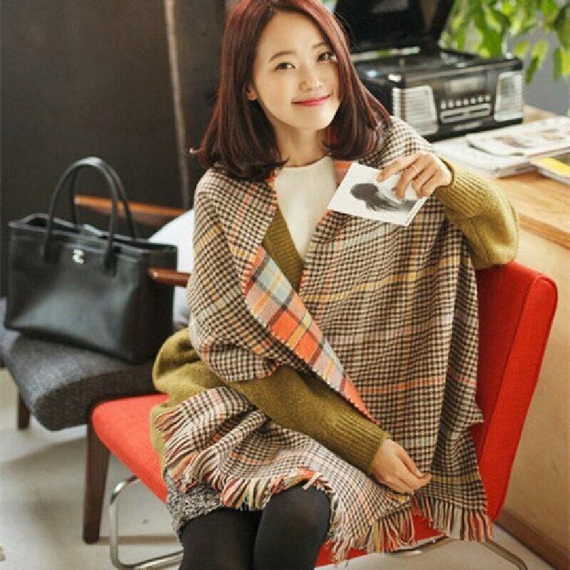 チェック柄ダブル使えスカーフ温かいタッセルスカーフ冬コーデ 【DL-898】