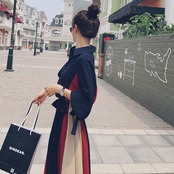 配色切り替え大振りワンピースデートおしゃれコーデ秋コーデお出かけ甘美ワンピース 【DL-963】