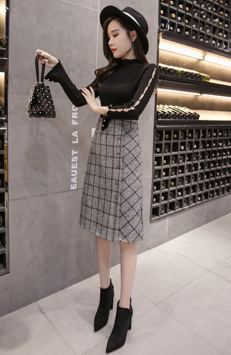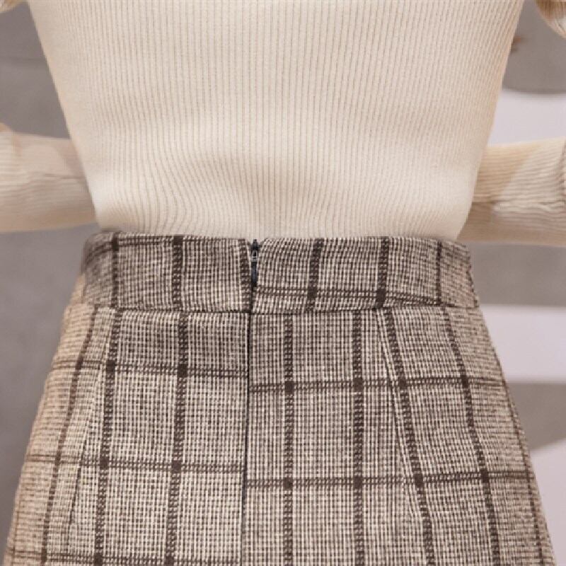 チェック柄Hライン膝丈スカート着回し通勤OL 【DL-891】