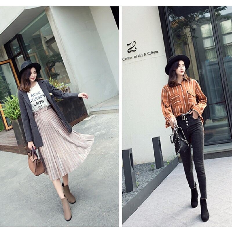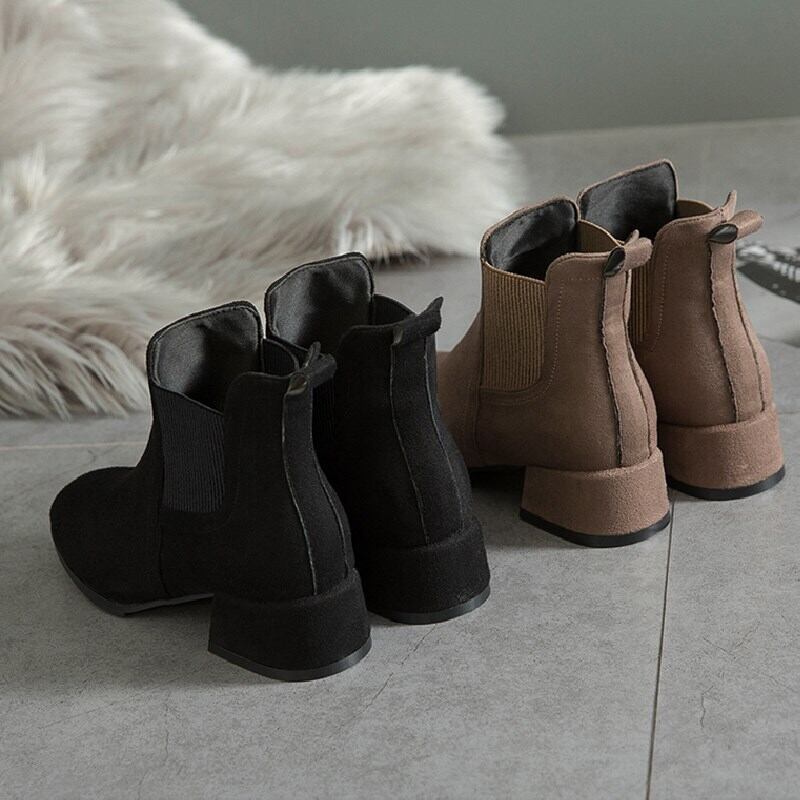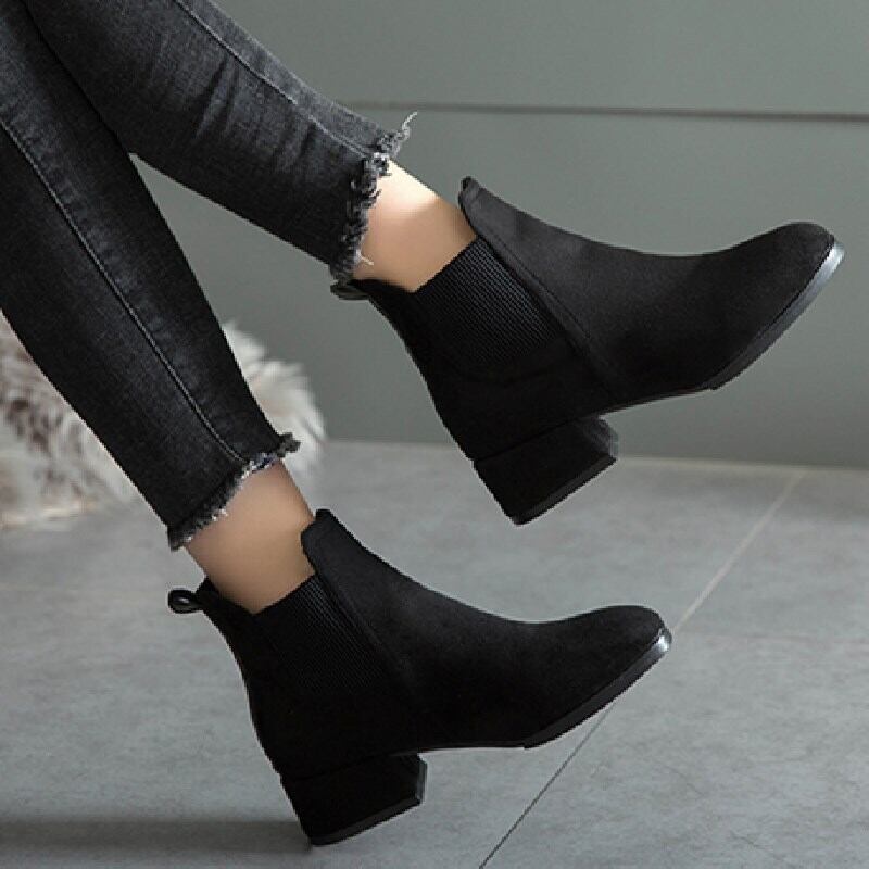 今季マストバイ レトロPUスエード丸トゥミドルヒール切り替えブーツ 【DL-979】
