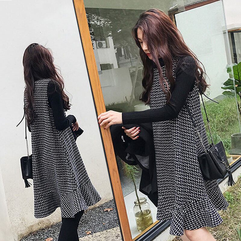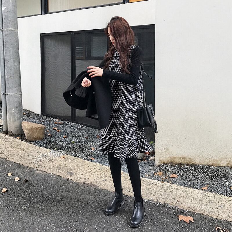 チェック柄フレア裾無袖ワンピース&ブラックTシャツセットアップ 【DL-958】