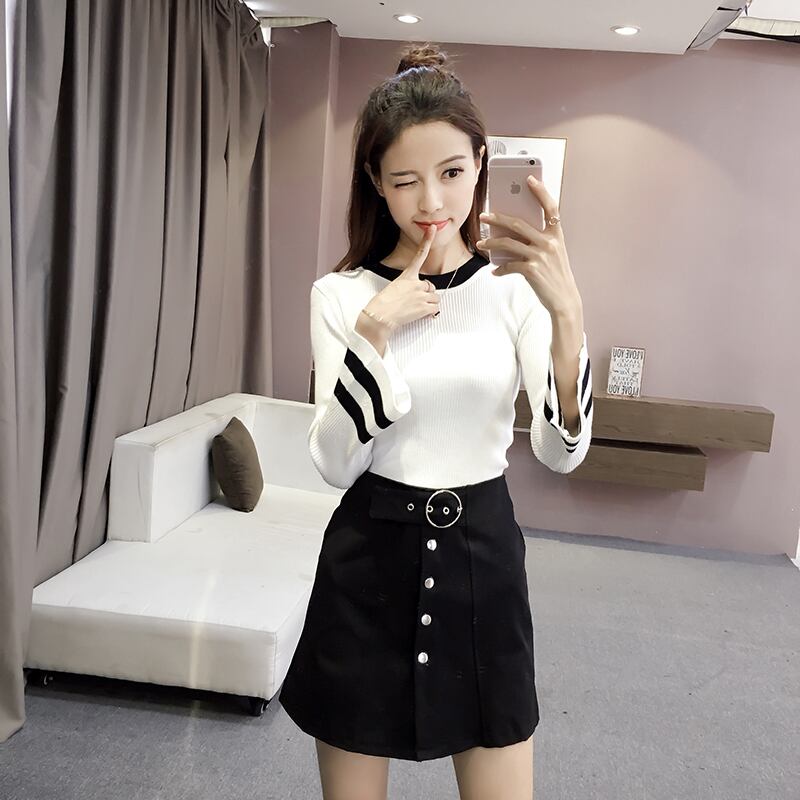 トラペットニットウェアシンプル着回しトップス 【DL-923】