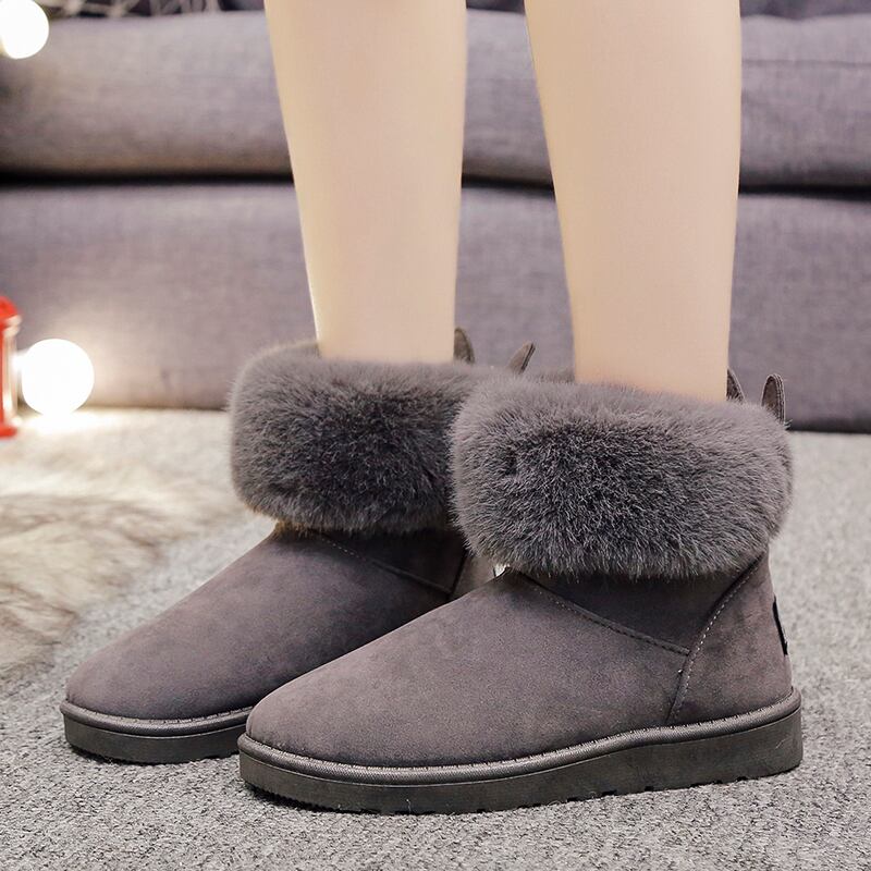 秋冬ローヒールビーズ付きウサギ耳可愛い丸トゥキュートリボン付きブーツ 【DL-991】