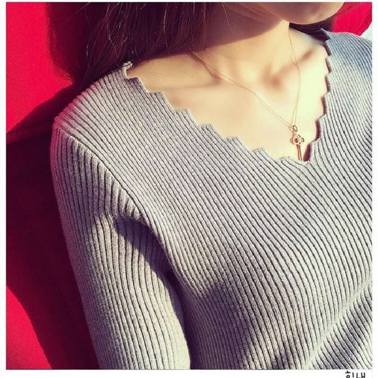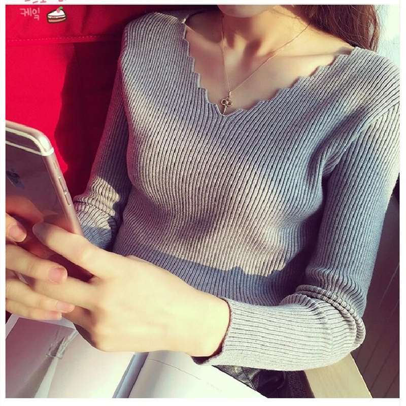 ストライプVネックカシュクールシンプル着回しトップスTシャツ 【DL-925】