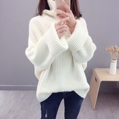 ハイネックカジュアル無地セーターリゾートカジュアルニットセータートップス 【DL-940】