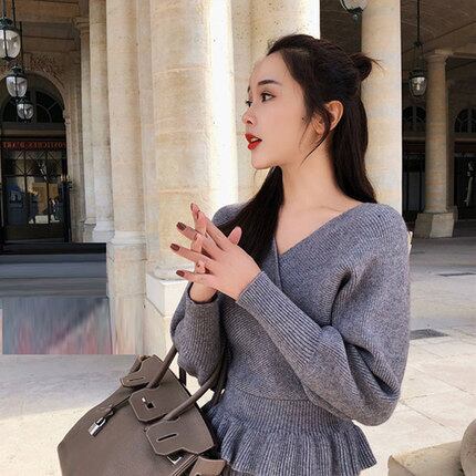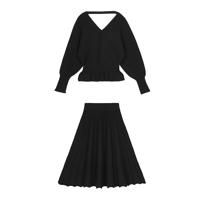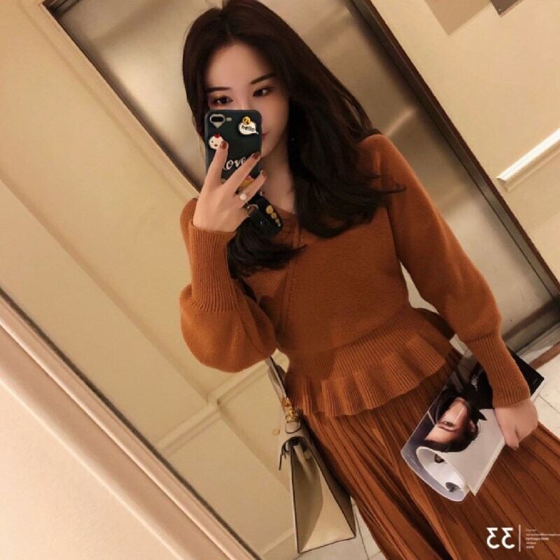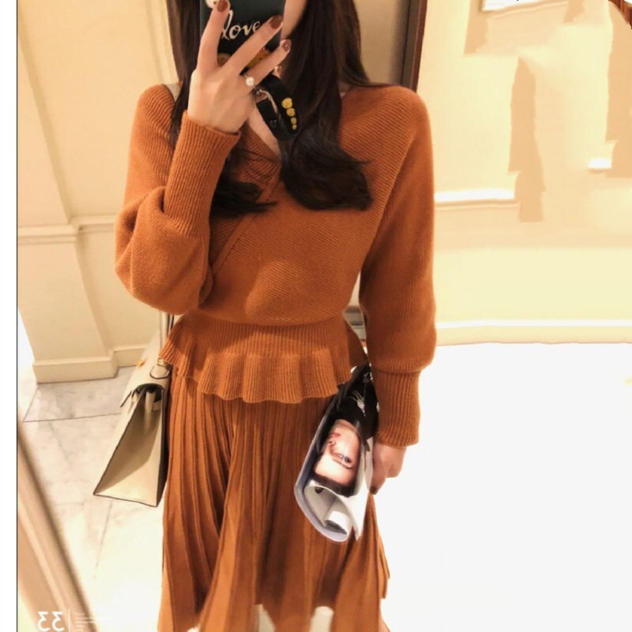 ニットセットアップペプラムフレア裾スカート着回し2点セットアップ冬コーデ 【DL-1019】