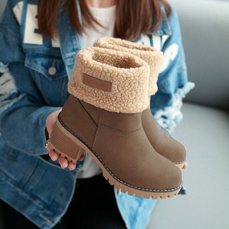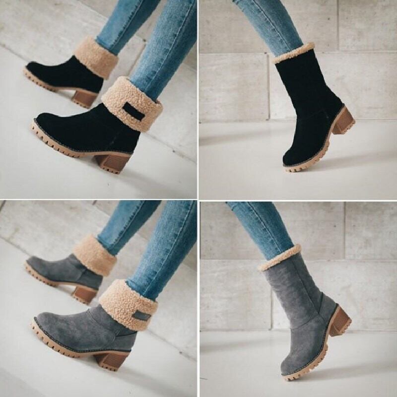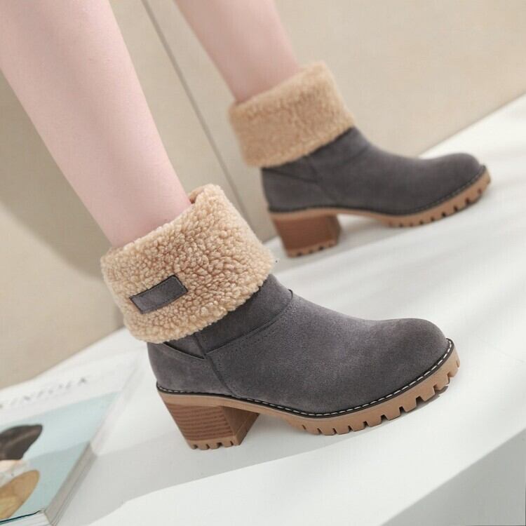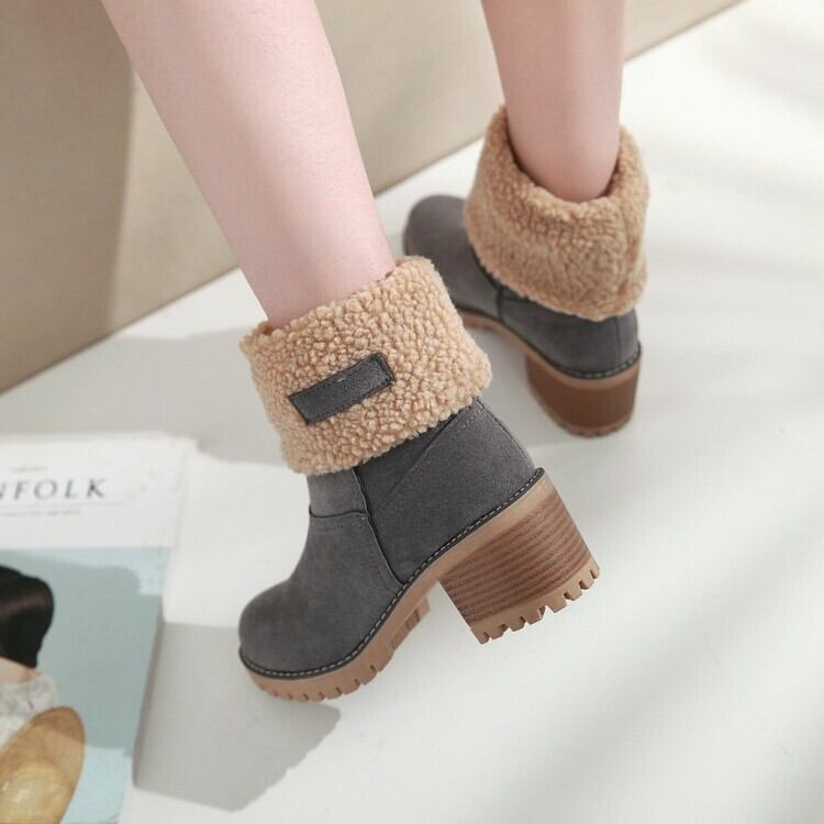 ラムウール着回し力抜群 ファッションスエード丸トゥチャンキーヒールブーツ 【DL-992】