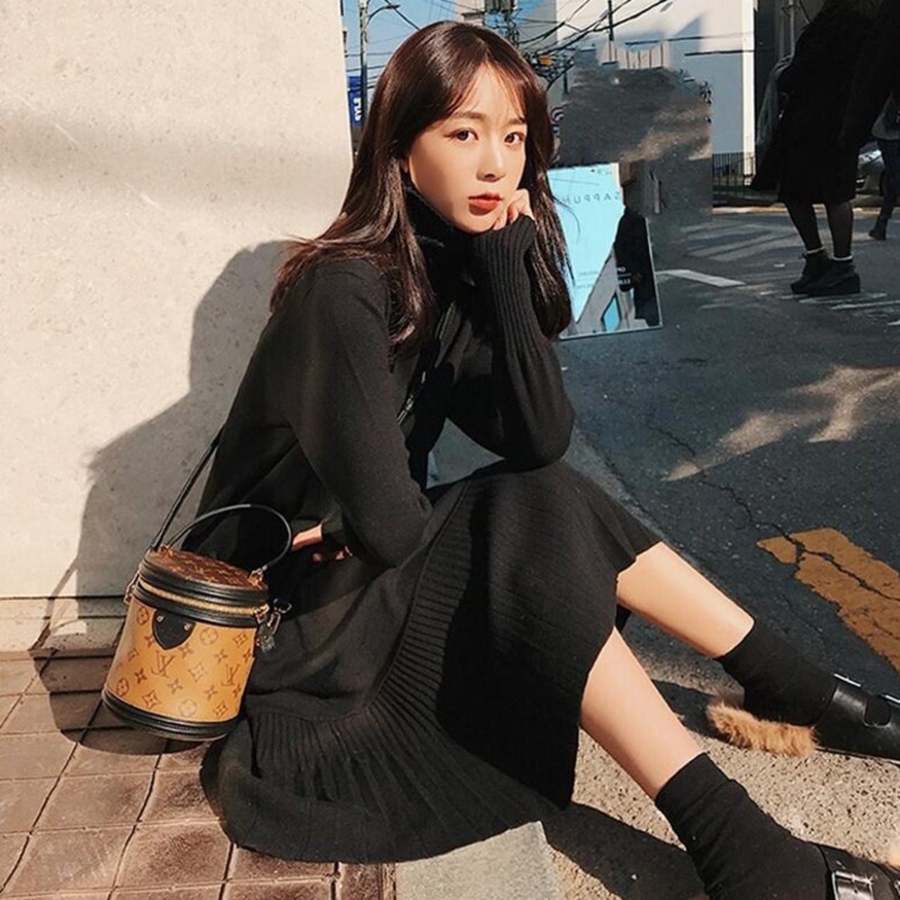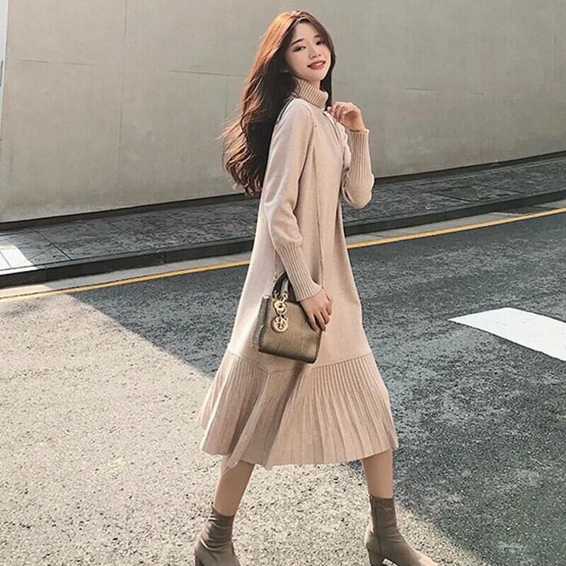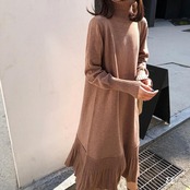 ニット可愛いフリル裾カジュアルリゾートワンピースエレガントデートワンピース 【DL-1198】