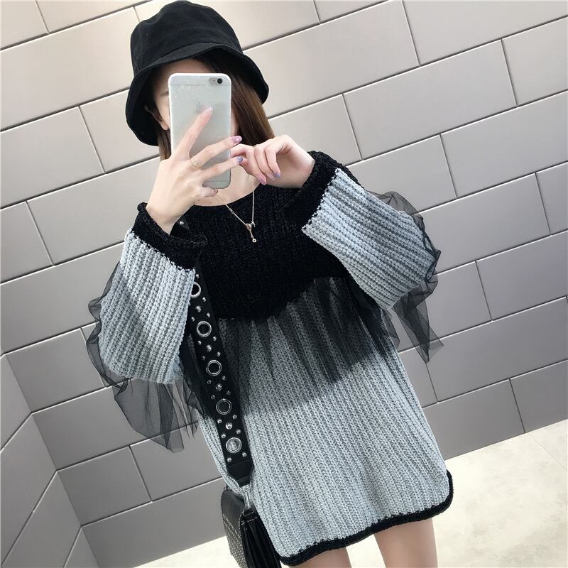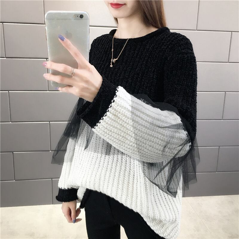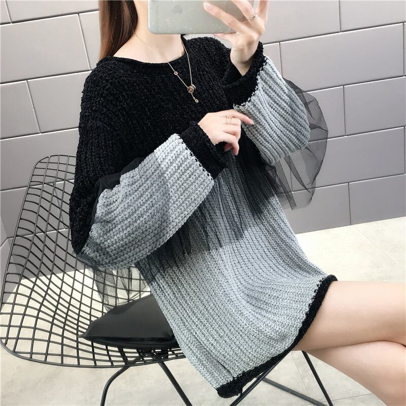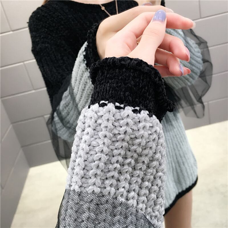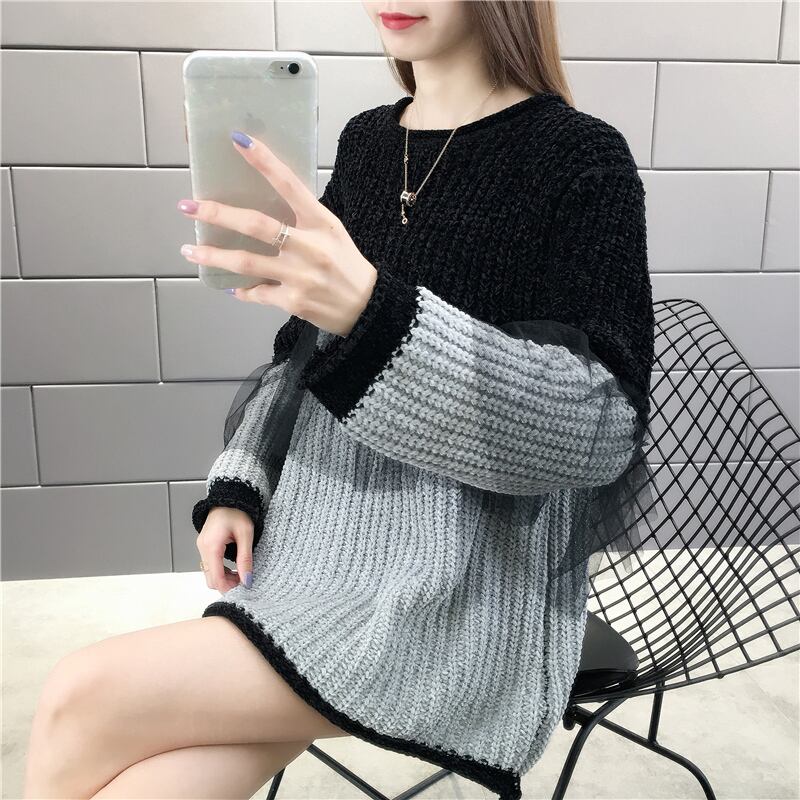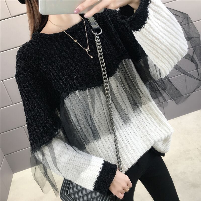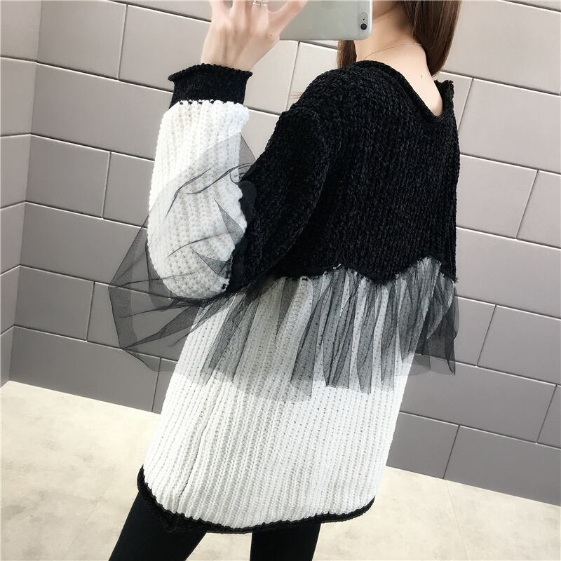 メッシュ切り替えニットセーター韓国風カジュアルリゾートトップス 【DL-1392】