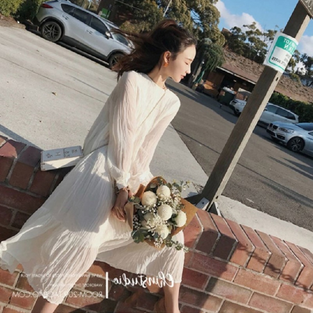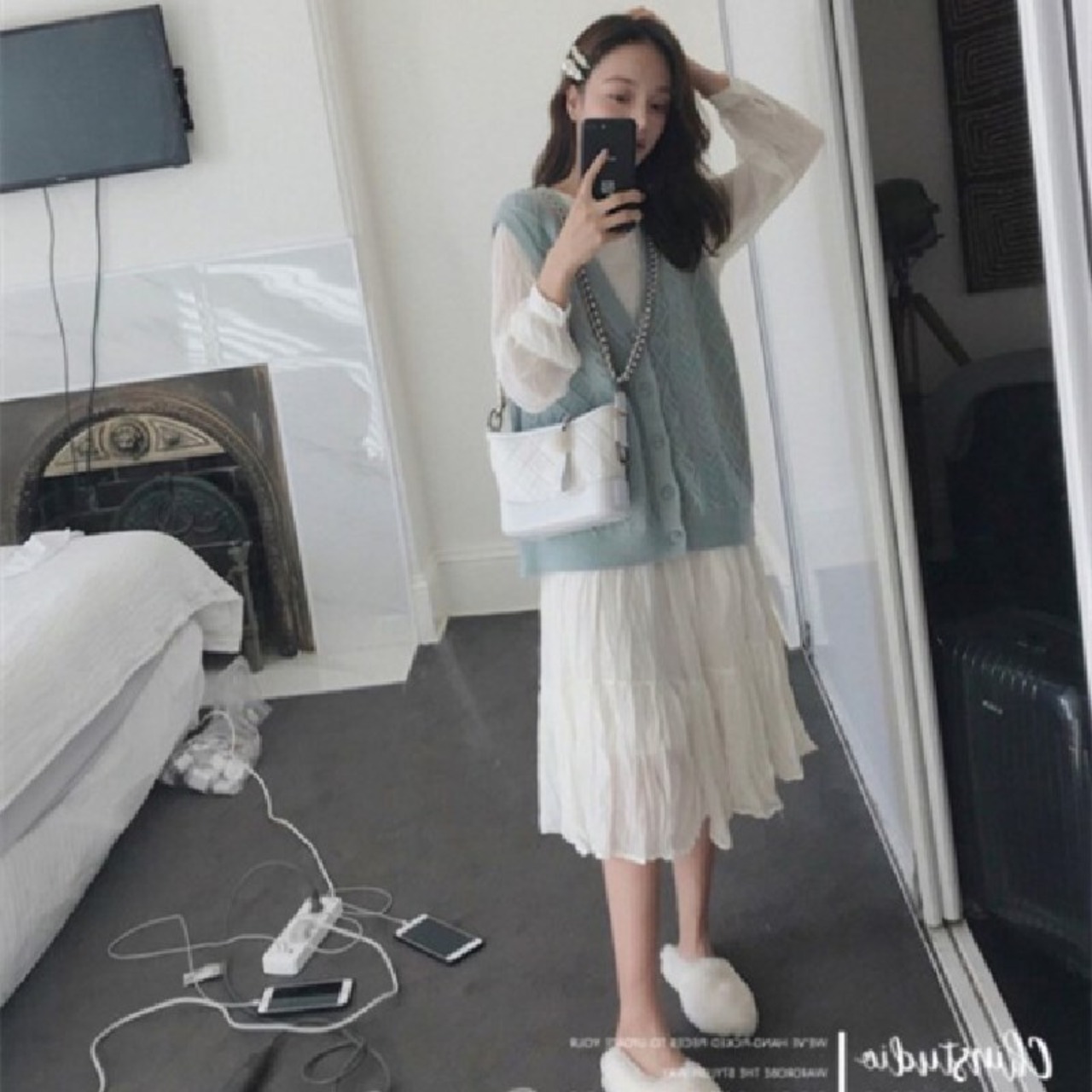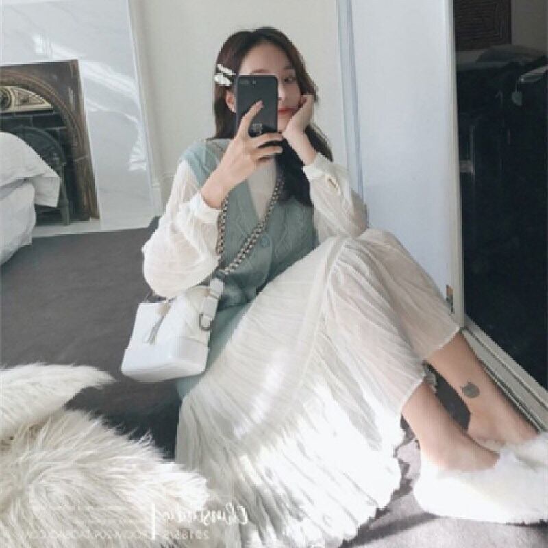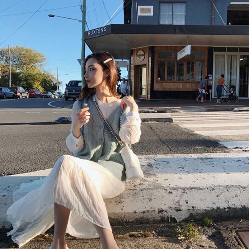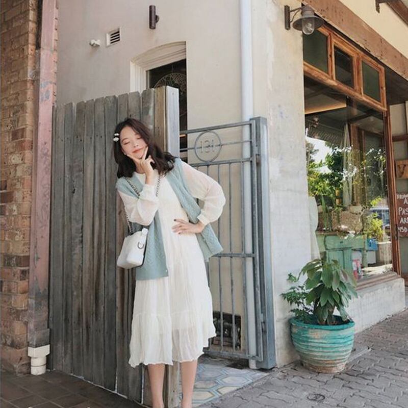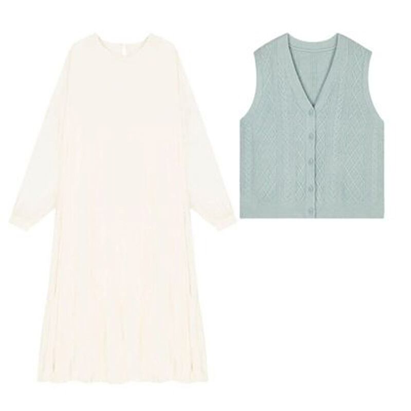 ホワイトおしゃれワンピース&ニットベストカーディガンセットアップ 【DL-1036】